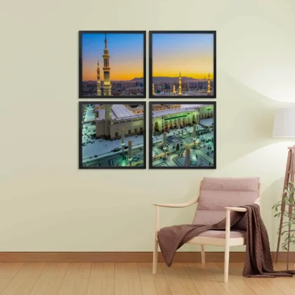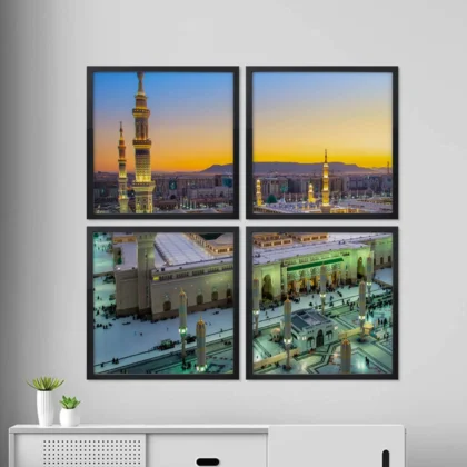 Masjid Nabavi Night View Window Style Frames | 4 Panel Frames