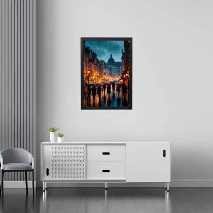Rain Road with People Having Ambrella Amine Colourful Poster | Artistic Wall frame