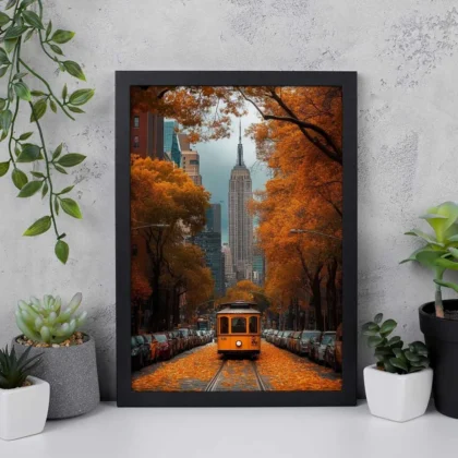 A Beautiful Newyork Autumn Season with Nature & Train | Home Decor Frame
