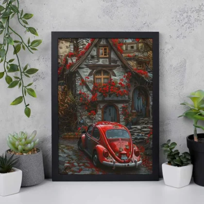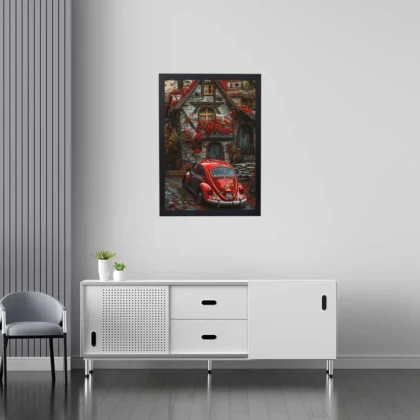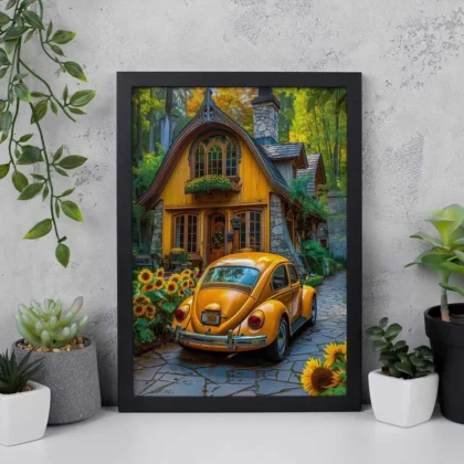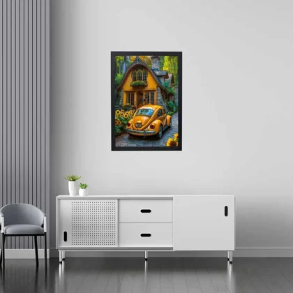 Artistic Vintage Car with a Yellow Themed Peaceful Home | Artistic Wall frame
